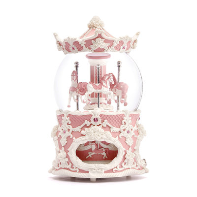 胭脂粉紅 洛可可旋转木马 水晶球音乐盒