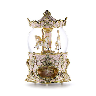 王者之尊旋轉木马(淡粉金) 水晶球音乐盒