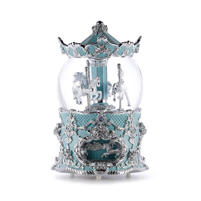 王者之尊旋转木马(淡粉蓝) 水晶球音乐盒