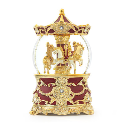 酒红金旋转木马(灯光) 水晶球音乐盒
