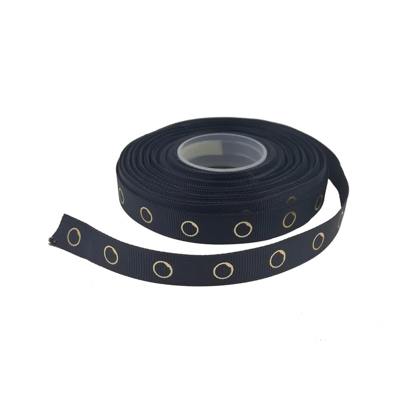 4/8"黑色平面烫金圆圈缎带LJ079 禮物 |