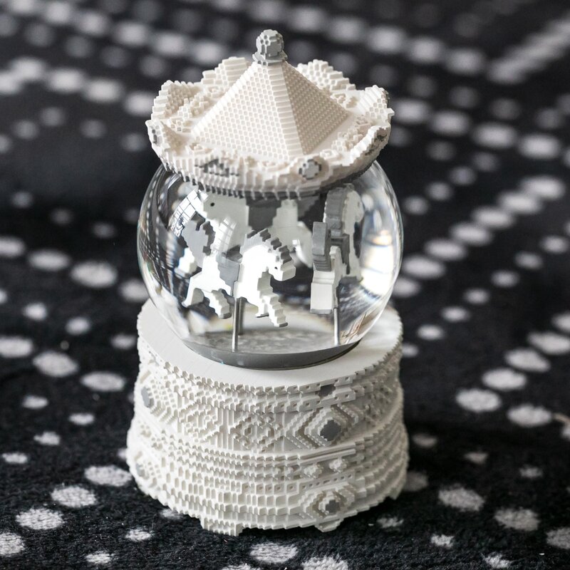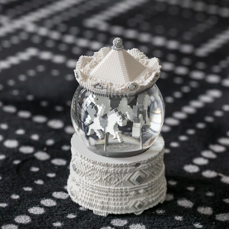 Pixel Series-Morandi Grey Carousel Musical Water Globe 情人禮物