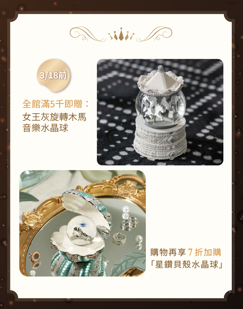 [5千滿額禮]旋轉木馬 - 積木風格(女王灰) 水晶球音樂盒